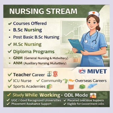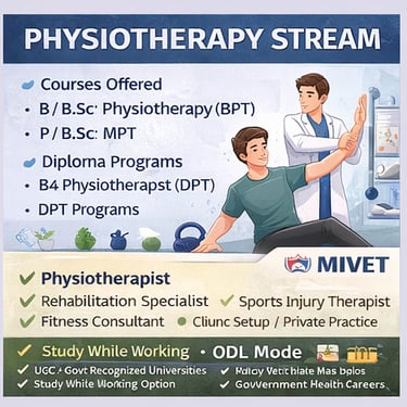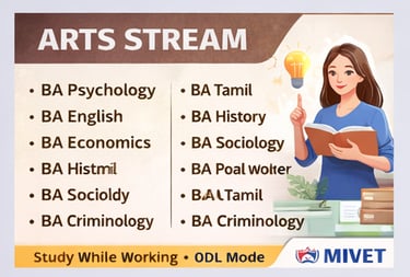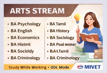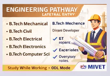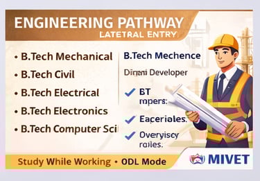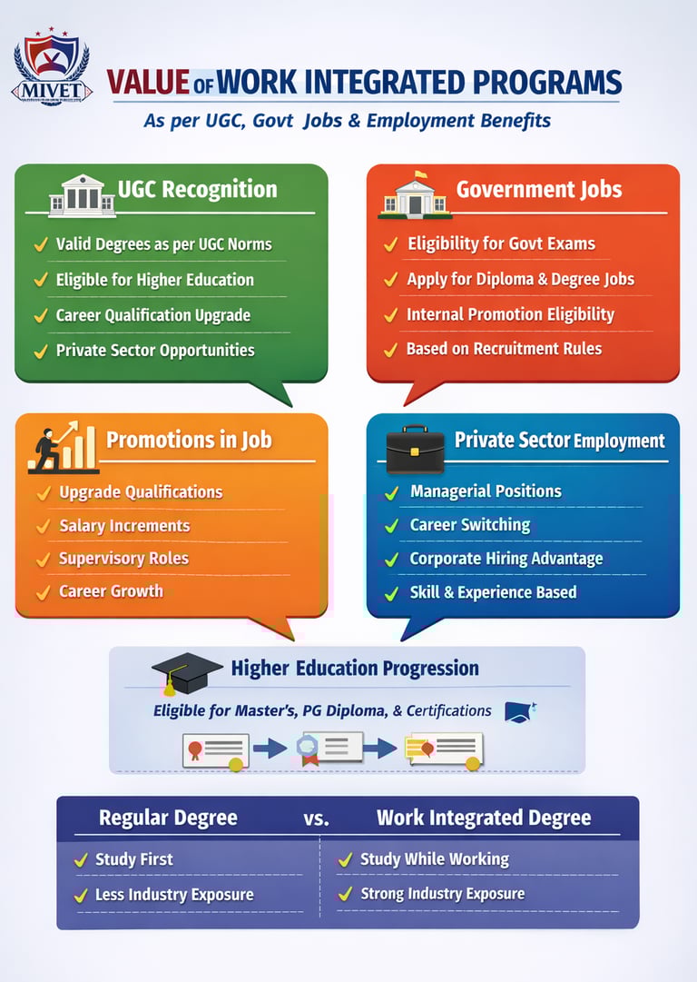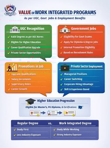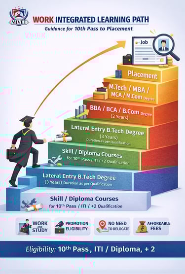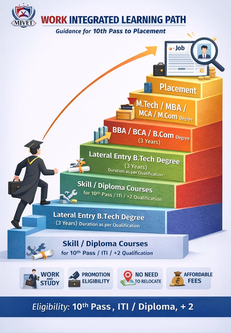 Madras Institute of Vocational Education and Training (MIVET) is a leading education support and vocational training institute committed to empowering students with career-oriented WILP- WORK INTERGERATED LEARNING PROGRAM Diploma, Bachelor’s, and Master’s level programs through recognized universities and institutions approved by UGC, AICTE, and other statutory bodies.